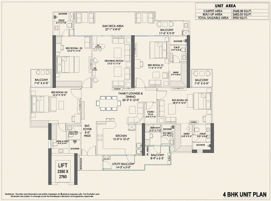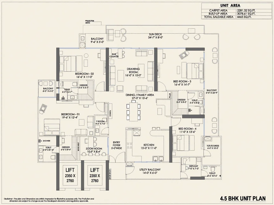 This masterfully planned development brings Sobha’s globally-recognized attention to quality and finish to Greater Noida West. The 12-acre campus will feature 8 towers of G+45 floors, delivering approximately 1,375 limited apartments with only 4 flats per floor for privacy and exclusivity. Units are thoughtfully proportioned (approx. 1,300 — 2,500+ sq.ft.) to maximise daylight, ventilation and usable living area. Residents will benefit from a three-level basement parking, a three-tiered amenity ecosystem (residential, recreational and wellness), and the largest ultra-luxury clubhouse complemented by abundant landscaped open space. The project is positioned for long-term value, anchored by strong connectivity, top social infrastructure and Sobha’s delivery pedigree.